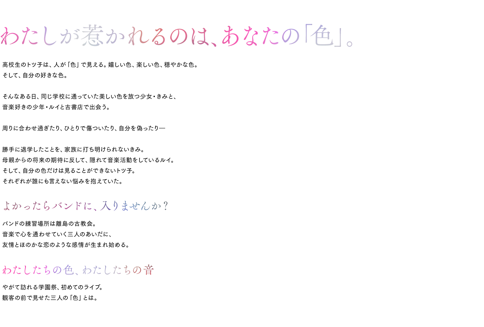 美しい色を放つ少女・きみと、